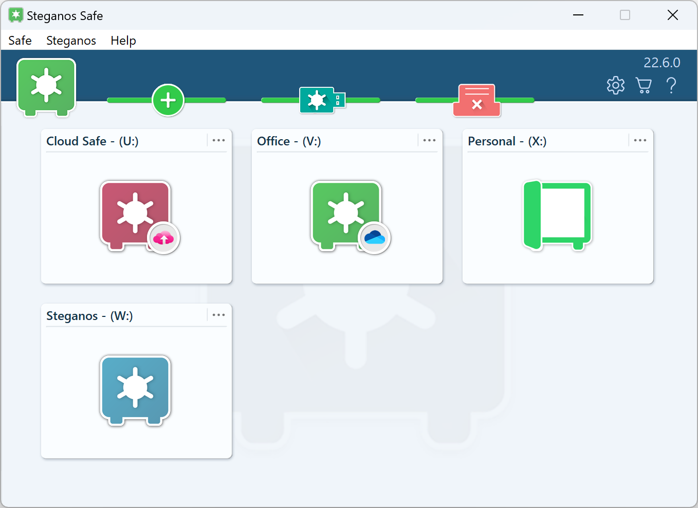 With the new Steganos Data Safe you are relying on a new, future-oriented technology that will enable us to offer you cross-platform encryption in future updates. You can set up a digital data safe in no time at all and store all your documents there securely. Thanks to highly secure encryption and two-factor authentication of your various safes, thieves and snoops have no access whatsoever. Only you can access your archived documents. Security as it should be and future-proof for future expansions and parallel use on other operating systems.